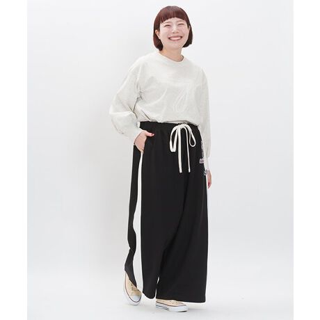 スポーティーなジャージ素材で作られたトラックパンツ。