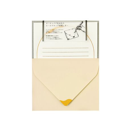 フラップと便箋に箔押しの加工を施し、シンプルでありながらも大人らしい華のあるレターセットです。