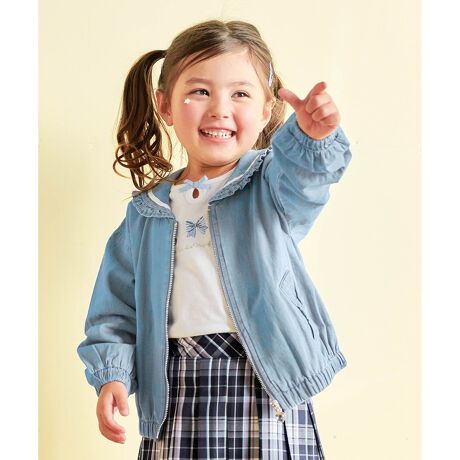 キッズ/長袖/ブルゾン/セーラーカラー/刺繍/ハート/リボン/ビジュー/通園/通学/人気/デイリー/女の子/ガール/サスティナブル