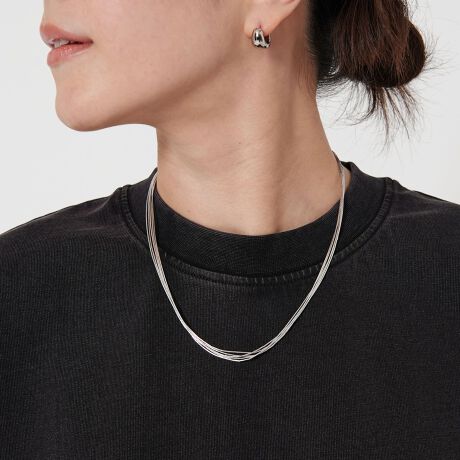 極細のスターリングシルバー製ビーズを連ねた5連デザインのネックレス。