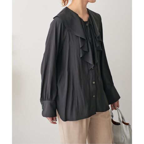 ナチュラルさもありながら華やかな印象を与えてくれるラッフルフリルブラウス。