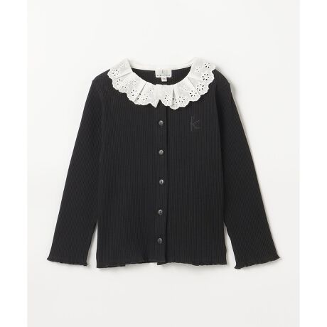 ■ポイント本体のリブ素材は伸縮性があり着心地抜群です。ボタンは組曲 KIDSオリジナルロゴ入りボタンを使用しています。前を閉めてトップスとしても、前を開けてレイヤードスタイルでもご着用いただける万能アイテムです。