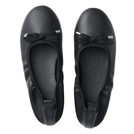 【学校行事やオフィスでマルチに活躍】持ち運びラクラク◎きちんと感のあるデザインも魅力の「携帯パンプス」。【嬉しい内履き・外履き兼用タイプ】滑りにくいソール付き。職場やフォーマルシーン、飛行機の移動時やドライブの履き替え用にも。【疲れを軽減し、冷気からも守る】程よい厚みで心地よい、ふかふかインソール。足裏にかかる衝撃を吸収し、ひんやり感もガード。【足元すっきり、キレイ魅せが叶う】甲から足首にかけてスッと魅せる、バレエシューズのようなフォルム。自然にスタイルアップ♪【脱げにくくフィットするゴム仕様】履き口まわりは締め付けがなく、足のサイズに馴染むゴムタイプ。踵がパカパカしない◎【持ち運びに便利なシューズバッグ】パンプスをまとめて、汚れを気にせずバッグイン!キュッと絞る巾着型&持ち手付き。【災害時の置き換え靴としても重宝】オフィスのロッカーや防災バッグに忍ばせておけば、いざという時も安心。【長く愛用できる大人可愛いアイテム】ベーシックなブラックカラーに、つま先のリボンがアクセント。キレイめコーデにマッチ☆