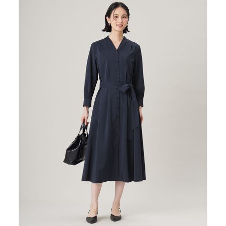 Vネックやボリューム袖が女性らしいシャツワンピース■デザイン立ち襟風のデザインとVネックが女性らしさを演出するシャツワンピースです。トレンドのボリュームスリーブがポイントで、ウエストから裾にかけてたっぷりと生地を使用したデザインです。付属のサッシュベルトでウエストマークした着こなしもおすすめです。デイリーや通勤に着て頂くのはもちろん、合わせるアクセサリー次第で、お顔合わせやお食事会のような華やかなシーンにも活躍する1着です。■素材シックアンドシンの生機を厳選し、タンブラー加工と特殊加工を施すことで、柔らかく膨らみのある素材に仕上げています。ドライタッチでシワになりにくく、接触冷感、UVカット、吸水速乾の機能も併せ持っています。