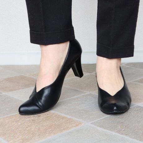 日本製 HS Vカット レザー タッチ パンプス