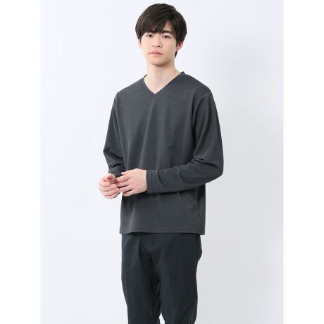 シンプルなVネックの長袖Tシャツです。一枚で着るのはもちろん、ジャケットやシャツ、ベストのインナーとしても重宝するアイテムです。プライベートからオフィスカジュアルまでオンオフ兼用で着回しが可能です。