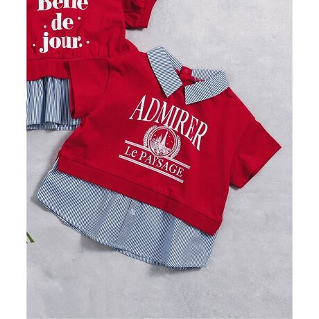 apres les cours(アプレレクール)の半袖Tシャツ「【リンク】シャツレイヤードロゴTシャツ」は、ナチュラルなスタイルにさりげなくデザインをプラスしたおしゃれアイテム*