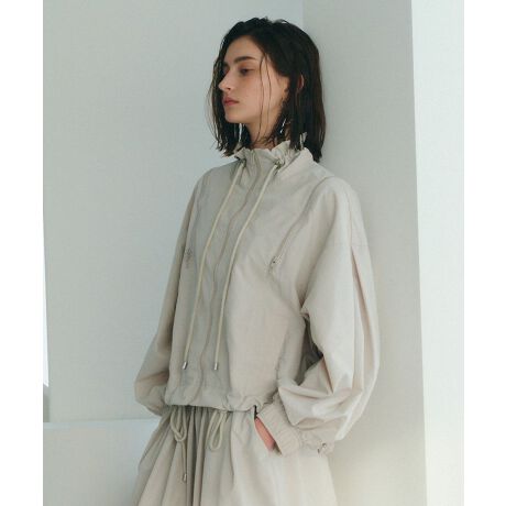 アームホールのジップを少し開けてインナーを見せたり、脇下まで開けてジレ風に着こなしたりと、様々なアレンジを楽しめます。襟周りや裾にはドローコードを配し、シルエットも自在。