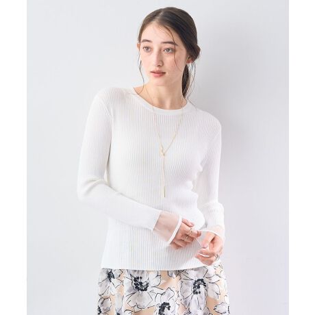 袖口のシアーデザインが抜け感を演出するリブニットトップス。