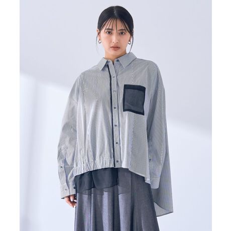 ハリ感のあるシャツ素材と軽やかなシアー素材を組み合わせた個性的な一枚です。