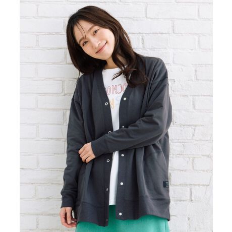 シンプルながらも、リングドットボタンが目を惹く裏毛カーディガン。