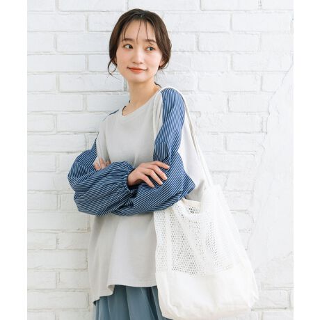 袖のストライプ切り替えがポイントのおしゃれカットソー。