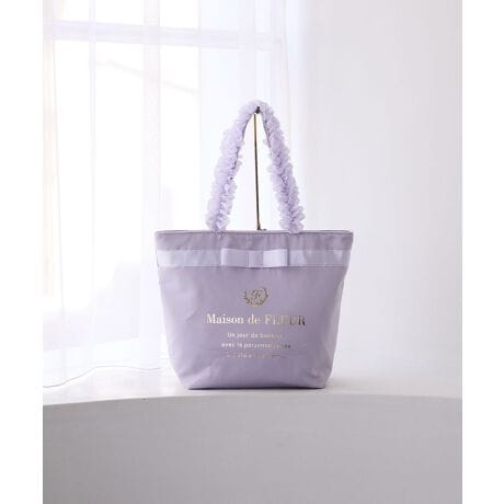 【A4サイズ対応】高級感のあるマットなサテン地に、フロントのリボンラインがフェミニンな印象のフリルハンドルトートバッグ。