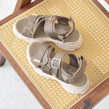カジュアルなダイバー素材のスポーツサンダル。カジュアルな雰囲気になりがちですが、ゴールドの金具がきれいめな印象を演出するので、様々なシーンで活躍します。軽くて柔らかい履き心地で歩きやすいのが嬉しいポイント。この夏、マストハブな1足です。