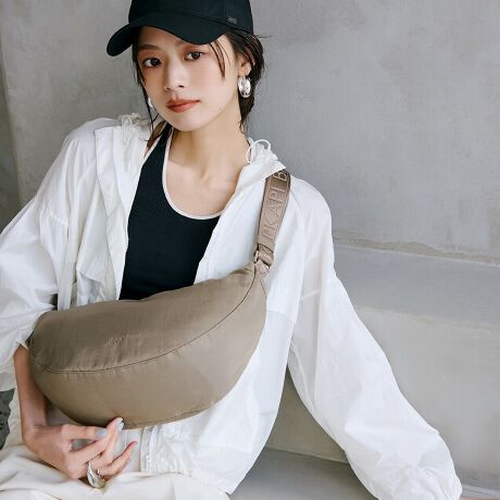 心地よく身体にフィットするハーフムーン型のボディには長財布やペットボトルがすっぽりと収まり、見た目以上の容量を確保。