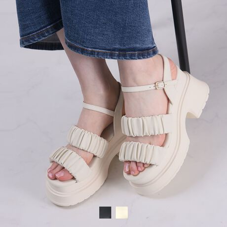 厚底ダブルギャザーベルトストラップサンダル