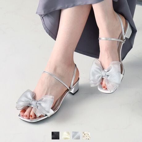 【25春夏新作】シアーチュールリボン2WAYストラップサンダル