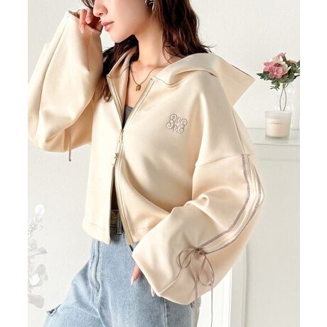 ・ガーリーやエレガントに合わせやすいZIPパーカー。