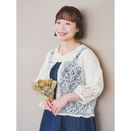 ・繊細なレース刺しゅう素材で仕立てられた羽織るだけで大人のフェミニンコーデが即完成するアイテム。