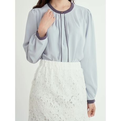 配色パイピングブラウス(無地/花柄)