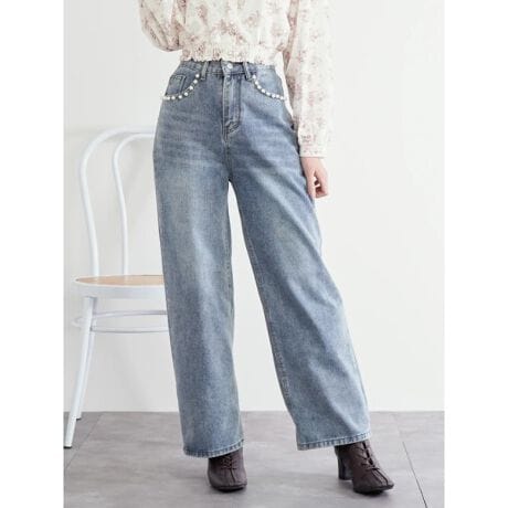 パールポケットワイドデニムパンツ
