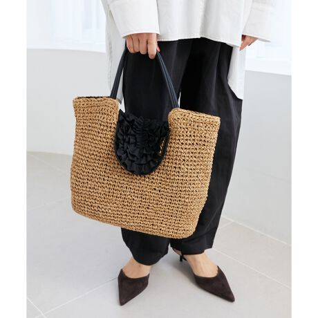 前フラップのフリルがポイントのかごバッグ。