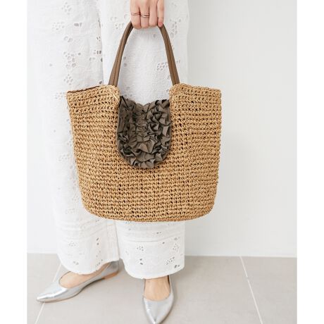 前フラップのフリルがポイントのかごバッグ。