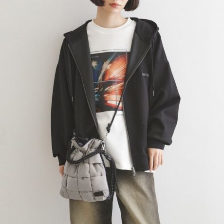 ADAMPATEK別注のパテッド巾着ショルダーバッグ。