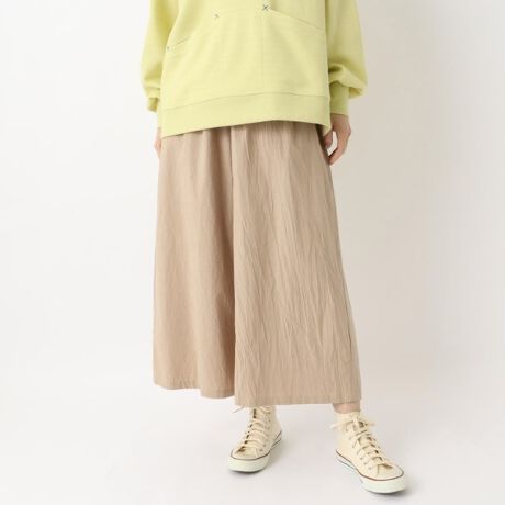 撚糸を使って織り上げたコットン生地のワイドパンツ。