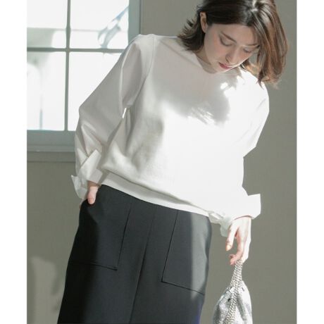 ・ややコンパクトなボディで、きれいめに着られるニットプルオーバー。