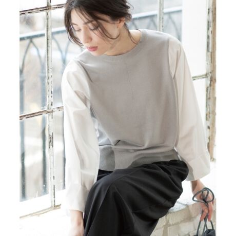 ニットとシャツ素材をドッキングさせた、人気のボリュームスリーブトップス