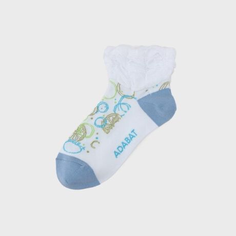 履き口のくしゅくしゅとしたフレンチデザインが特徴的な、フェミニンさを感じさせるショート丈ソックスです。