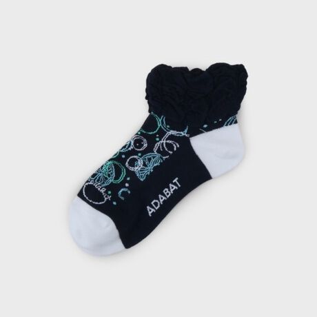 履き口のくしゅくしゅとしたフレンチデザインが特徴的な、フェミニンさを感じさせるショート丈ソックスです。