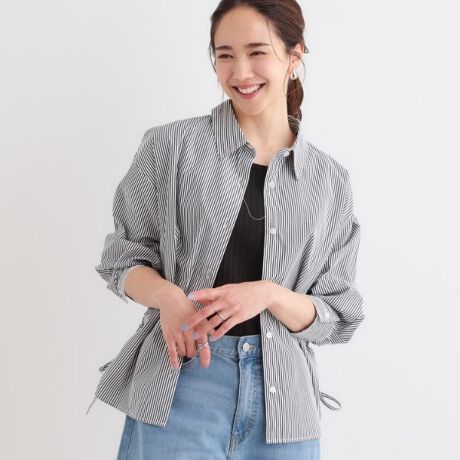 左右を絞ってワイドデニムやフレアスカートと相性良く着ていただけます。