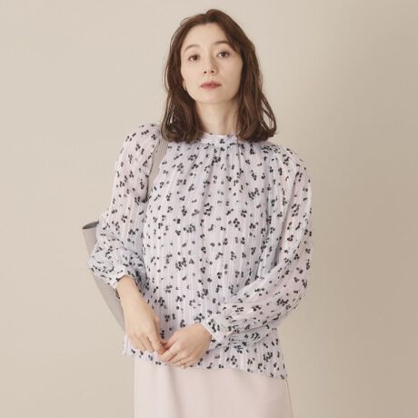 【通勤/手洗い可】ラメストストライプ花柄ブラウス