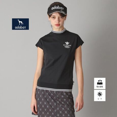 【新レーベル ADABAT NAVY】UVカット吸水速乾 ダブルラインモックネックT
