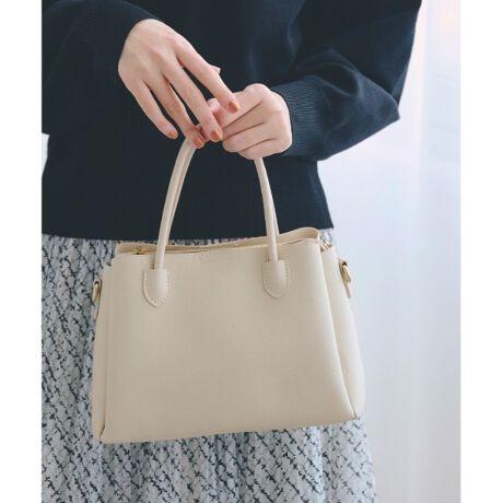 柔らかく軽量の合成皮革を使用したロープハンドルがポイントのボストン見えのトートバッグです。