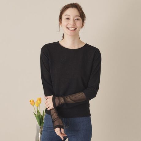 袖のシアー感が春らしく軽やかで、少し長めの袖丈にしているのでくしゅっとさせて着るデザイン。