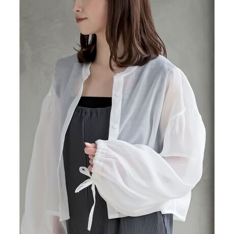 袖リボンバンドカラーシアーブラウス