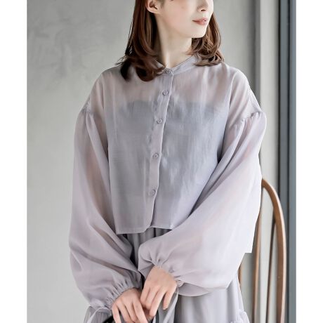 ふんわり袖がポイントのシアーシャツ