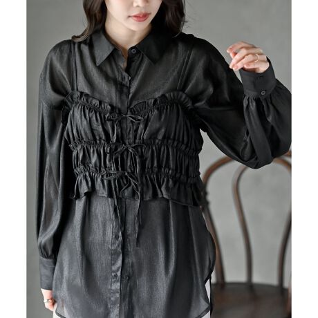 ガーリーなビスチェがついたシアーシャツ