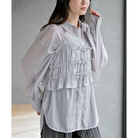 ガーリーなビスチェがついたシアーシャツ