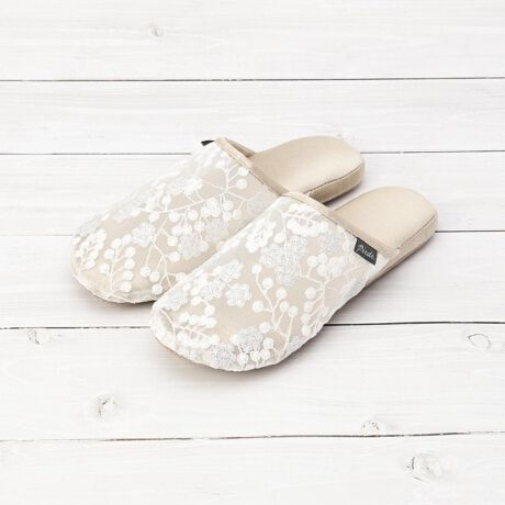 甲部にレース生地をあしらった華やかで女性らしい新作スリッパです。