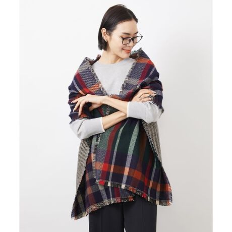 コーディネートの差し色に一枚は持っておきたいチェックストール。様々なカラーが配色されているのでどんなスタイルんぐにも相性が良く、暗くなりがちな秋冬のコーディネートを華やかにしてくれます。