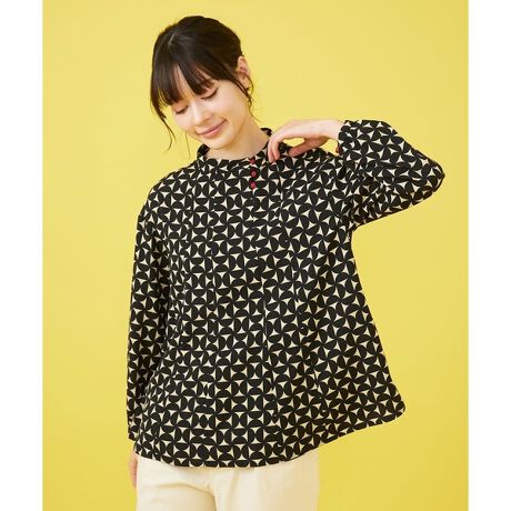 Hojas giratoria プリントスタンドカラーブラウス