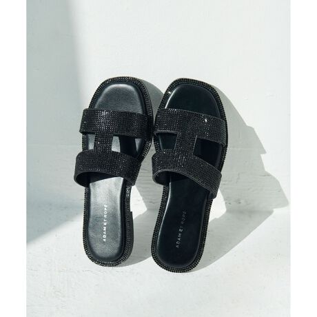 きらびやかで繊細なラインストーンを贅沢に使用した、夏の日差しをきらきらと反射させて足元を彩ってくれる着脱しやすいフラットサンダル。