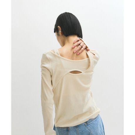 タンクトップをレイヤードしたようなデザインで、肩と胸あたりのカットアウトで女性らしさをプラス。