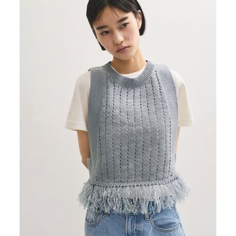 フリンジがアクセントのサマーニットジレ。
