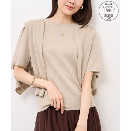 ・スパーク糸を中肉の編み地で編んだハーフスリーブニット。