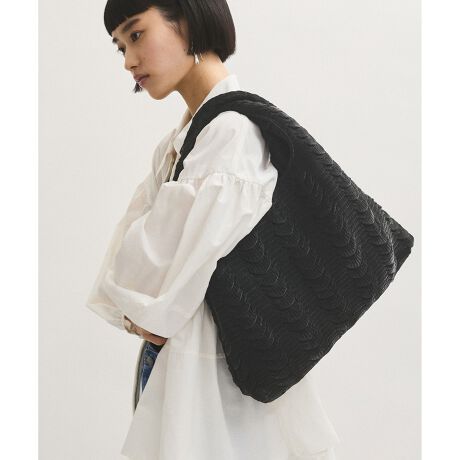 テクスチャーを加えた表面感のある素材がポイントのトライアングルバッグ。